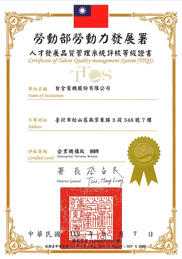 本公司專注於汽車安全零部件製造,致力於成為全球汽車供應鏈的策略夥伴,以「品質第一、顧客至上」為核心理念,積極推動人才培育與學習型組織的建構。我們以系統化的訓練體系為基礎,透過作業人員資格認證、專業職能培訓、年度教育訓練及大師講堂等多元課程,確保員工持續成長。近三年平均訓練費用超過300萬元,2023年更投入近千萬元推動ISO認證,展現對人才養成的高度重視。為提升培訓品質,我們導入TTQS並於2023年榮獲銅牌認證,建立以PDDRO為核心的標準流程,從需求分析、課程設計到成效評估,確保訓練有條不紊。未來,我們將持續優化訓練體系,推動數位轉型與生產力提升,實踐台全3S計畫,打造基業長青,並以卓越的人才發展,與全球夥伴共創價值。